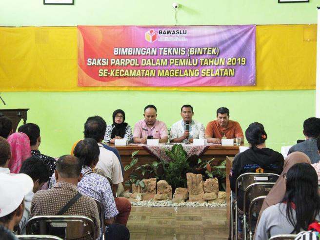 Maka demi terwujudnya kegiatan tersebut, Bawaslu Kota Magelang menyelenggarakan kegiatan “Bimbingan Teknis Saksi Partai Politik Se Kota Magelang” yang berjalan lancer dan sukses, sesuai dengan amanat Undang – Undang . Oleh karena itu, melalui kegiatan ini diharapkan antara Pengawas Pemilun dengan Saksi Partai politik mampu bersinergi mensukseskan pemilu 2019.