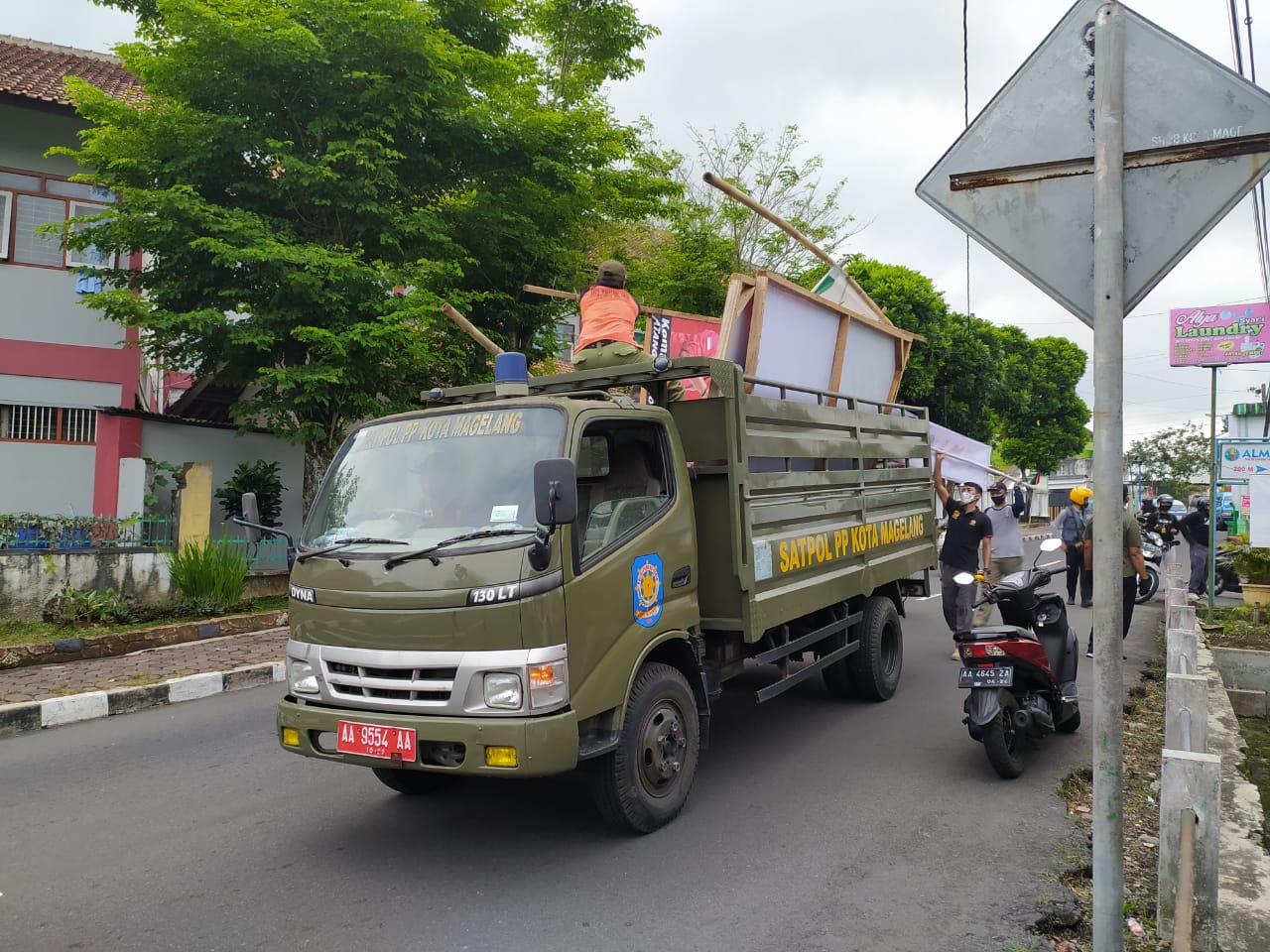 Bawaslu bersama Satpol PP Kota Magelang sesuai dengan amanat Perbawaslu berkoordinasi untuk merapikan APK-APK yang melanggar tersebut.