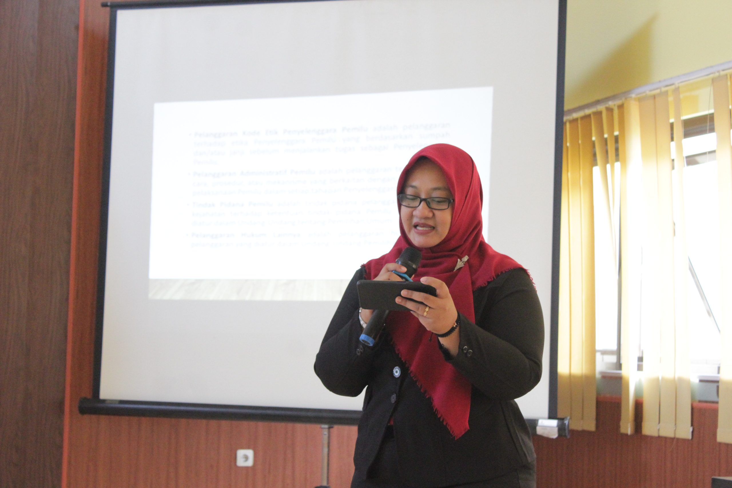 Rapat Koordinasi juga diisi dengan pemberian materi oleh Koordinator Divisi Penanganan Pelanggaran dan Penyelesaian Sengketa Bawaslu Kota Magelang, Sylvia Ayu Paramita. Materi yang diberikan adalah informasi seputar penanganan pelanggaran pemilu. Dalam pemaparannya, Sylvia menyebutkan ada empat unsur pelanggaran pemilu, yaitu pelanggaran kode etik, pelanggaran administrasi, tindak pidana pemilu, dan pelanggaran hukum.