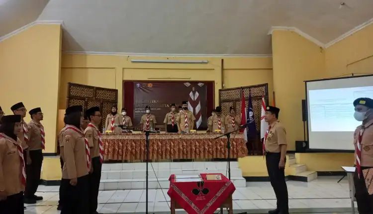 Kota Magelang - Kwarcab Kota Magelang melantik Saka Adhyasta Pemilu untuk meningkatkan pengawasan partisipatif dari kalangan Pramuka. Acara di gelar di Aula SMA Negeri SMA 4 Kota Magelang pada Kamis (19/5/2022).