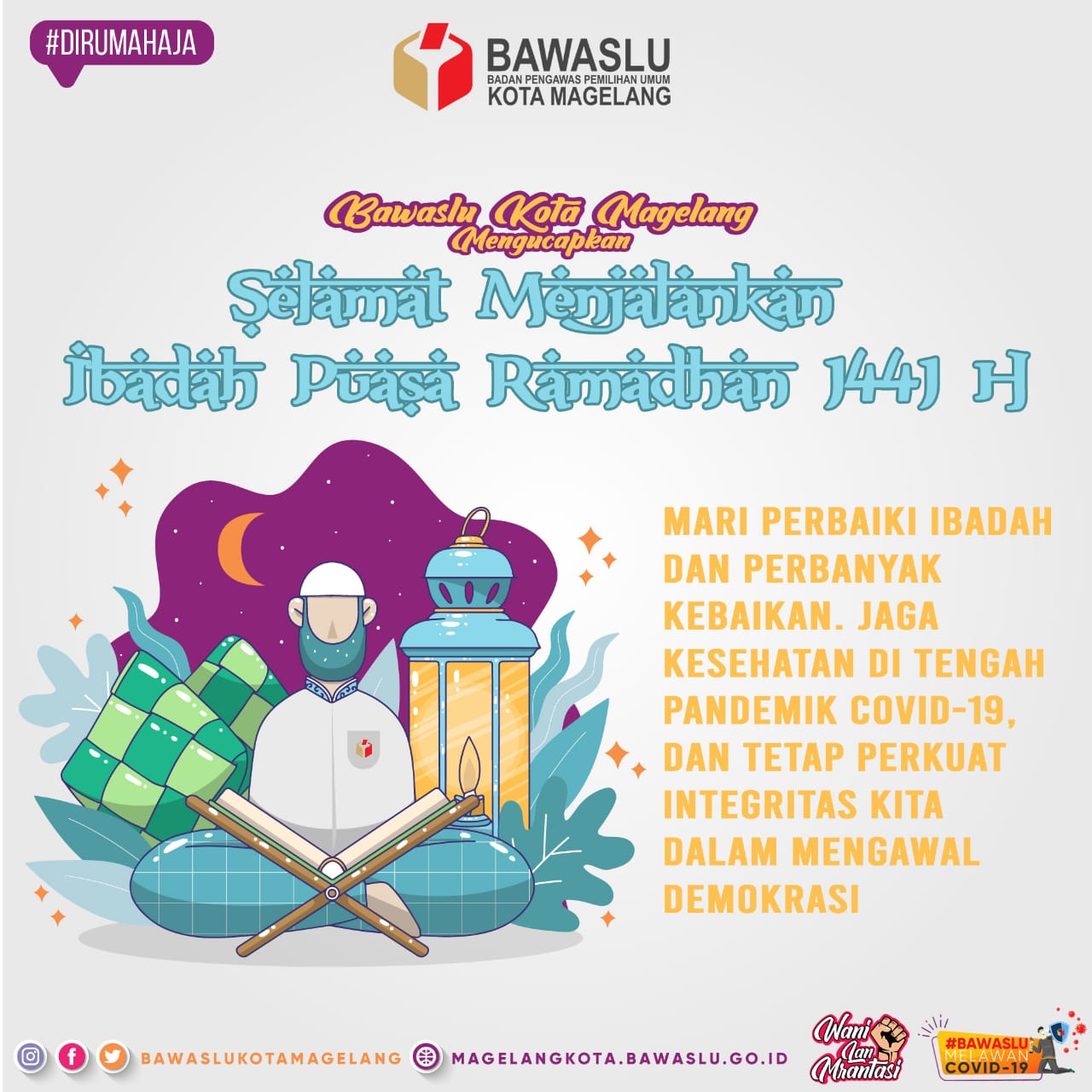 Selamat Menjalankan Ibadah Puasa Ramadhan 1441 H humas | Jumat, April 24, 2020 - 08:51 Keluarga besar Bawaslu Kota Magelang mengucapkan selamat menunaikan Ibadah Puasa Ramadhan 1441 H. Bersama kita songsong kebaikan. Tag Berita Share Berita Terkini humas Sabtu, Desember 6, 2025 - 09:09 Bawaslu Kota Magelang Gelar Penguatan Kelembagaan Jilid II, Teguhkan Peran Pengawas Pemilu Hadapi Disinformasi Digital humas Kamis, November 20, 2025 - 15:01 Mahasiswa Baru STMIK Bina Patria Dibekali Literasi Demokrasi oleh Bawaslu humas Kamis, November 20, 2025 - 14:27 Obrolan Santai, Bawaslu Kupas Pengawasan Partisipatif di Magelang FM Lihat Lainnya